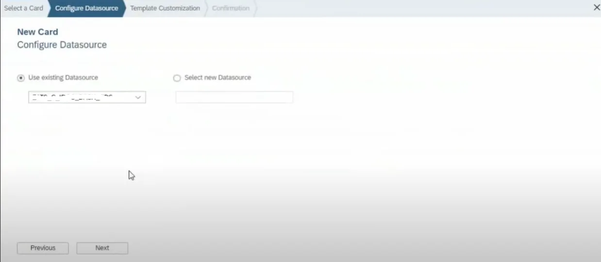 3. Verify the existing data source or select a new one on the “Configure Datasource” page, then click Next.