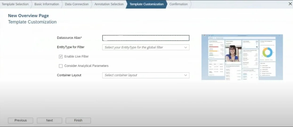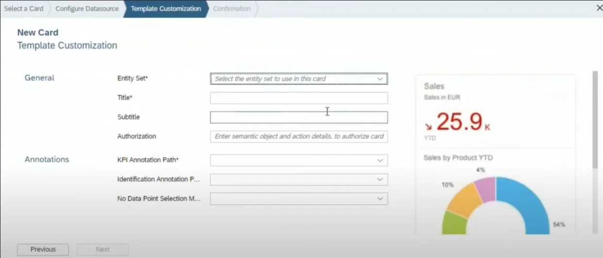 4. On the “Template Customization” page, select the Entity Set, provide Title, Subtitle, and Authorization details.