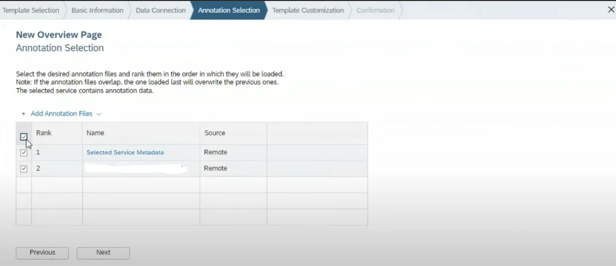 1. On the next screen, “Annotation Selection” -> Select the default annotation file and any other file associated with your OData source -> Click Next.