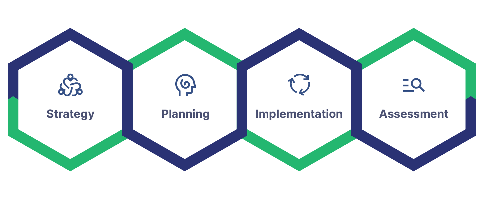 The effectiveness of the implementation is measured by an assessment. Assessments should be performed regularly so that any adjustments can be made in the future.