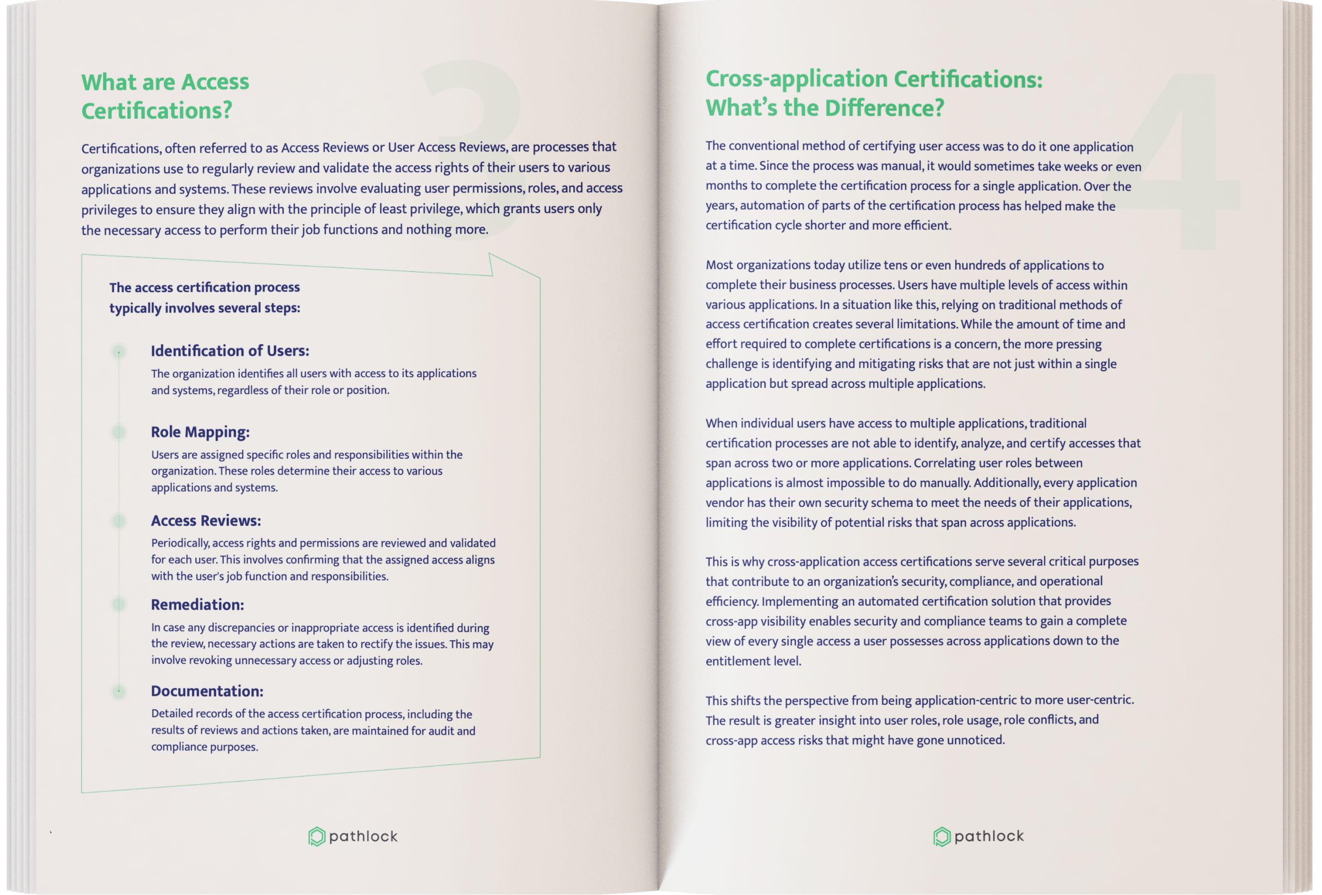 This guide explores how cross-application access certifications address modern security, compliance, and efficiency challenges. Learn how automation, risk-based reviews, role engineering, and AI-powered analytics reduce complexity, prevent unauthorized access, and ensure regulatory compliance. Discover how Pathlock’s platform simplifies and accelerates certifications across SAP, Oracle, Salesforce, and more—freeing IT teams to focus on strategic initiatives.